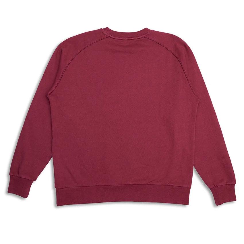 Felpa girocollo raglan con vestibilità a scatola e stampa sul petto. Realizzato in pile di cotone riciclato da 400 g con rovescio spazzolato e lavaggio enzimatico.